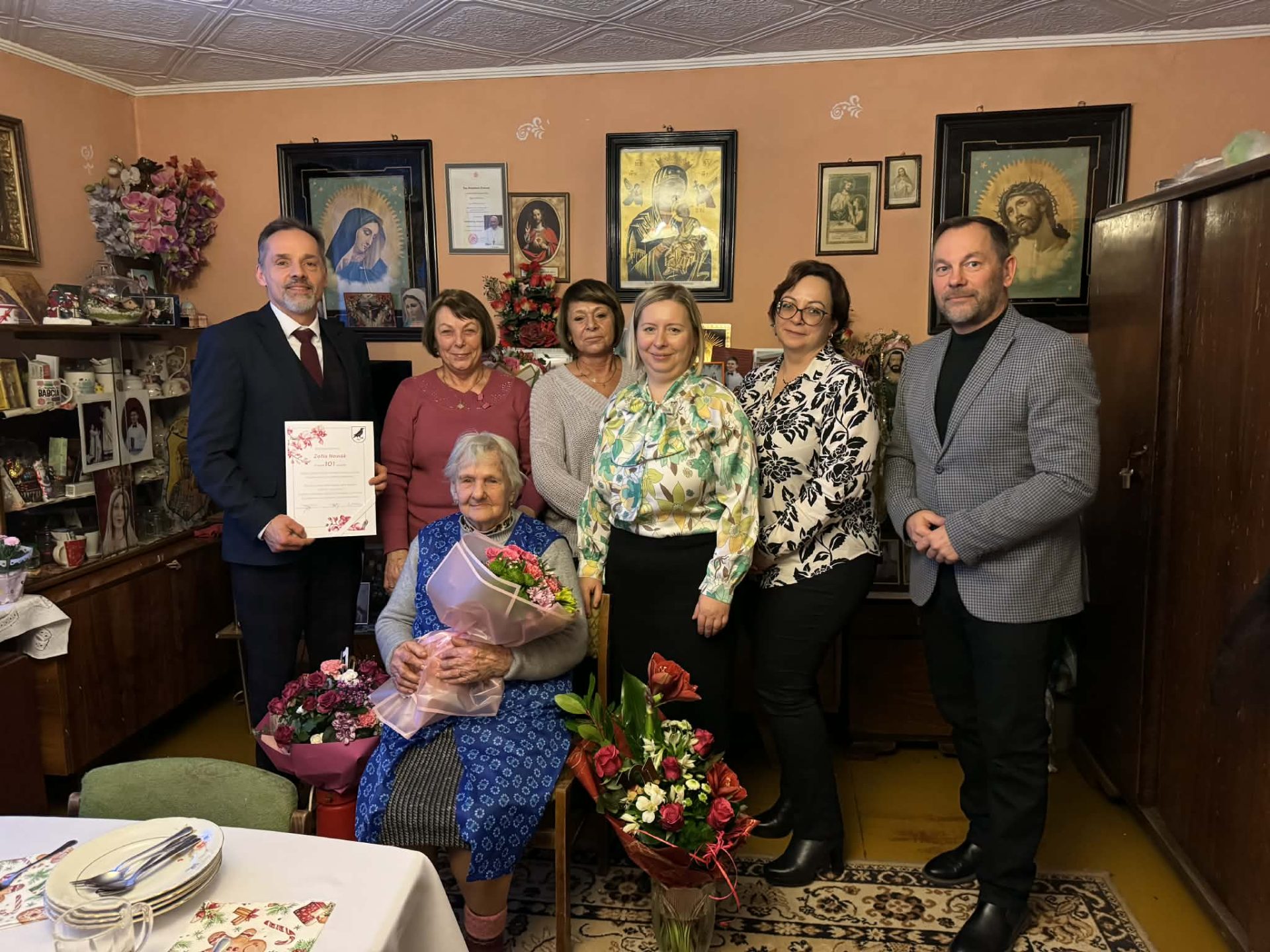 Podczas wizyty nie zabrakło symbolicznego tortu, kwiatów oraz słów uznania. Przed mądrością i doświadczeniem wynikającymi z przeżycia ponad stu lat życia przedstawiciele gminy wyrazili szczery szacunek i podziękowanie.