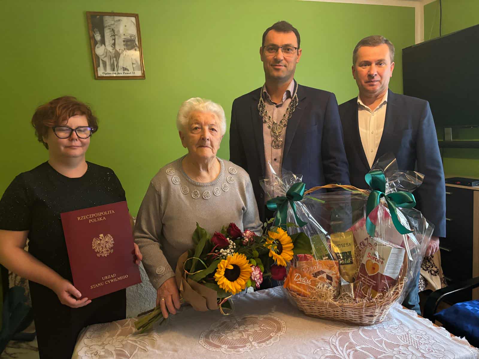 Podczas wizyty złożono Pani Balbinie serdeczne życzenia zdrowia, pogody ducha i kolejnych lat spędzonych w gronie najbliższych. Przekazano także kwiaty i upominek jako symbol uznania i szacunku dla bogatego życiowego dorobku Jubilatki.