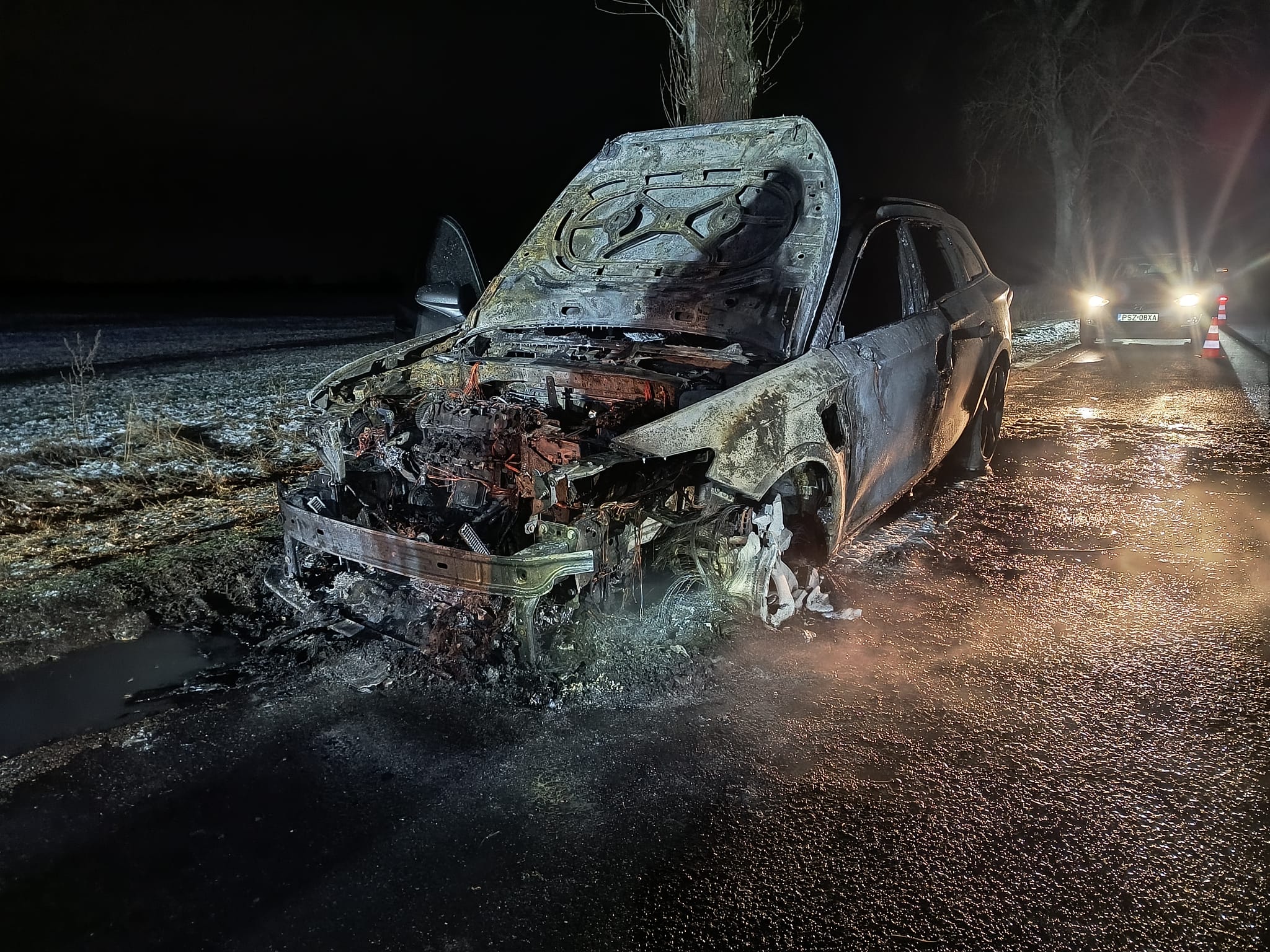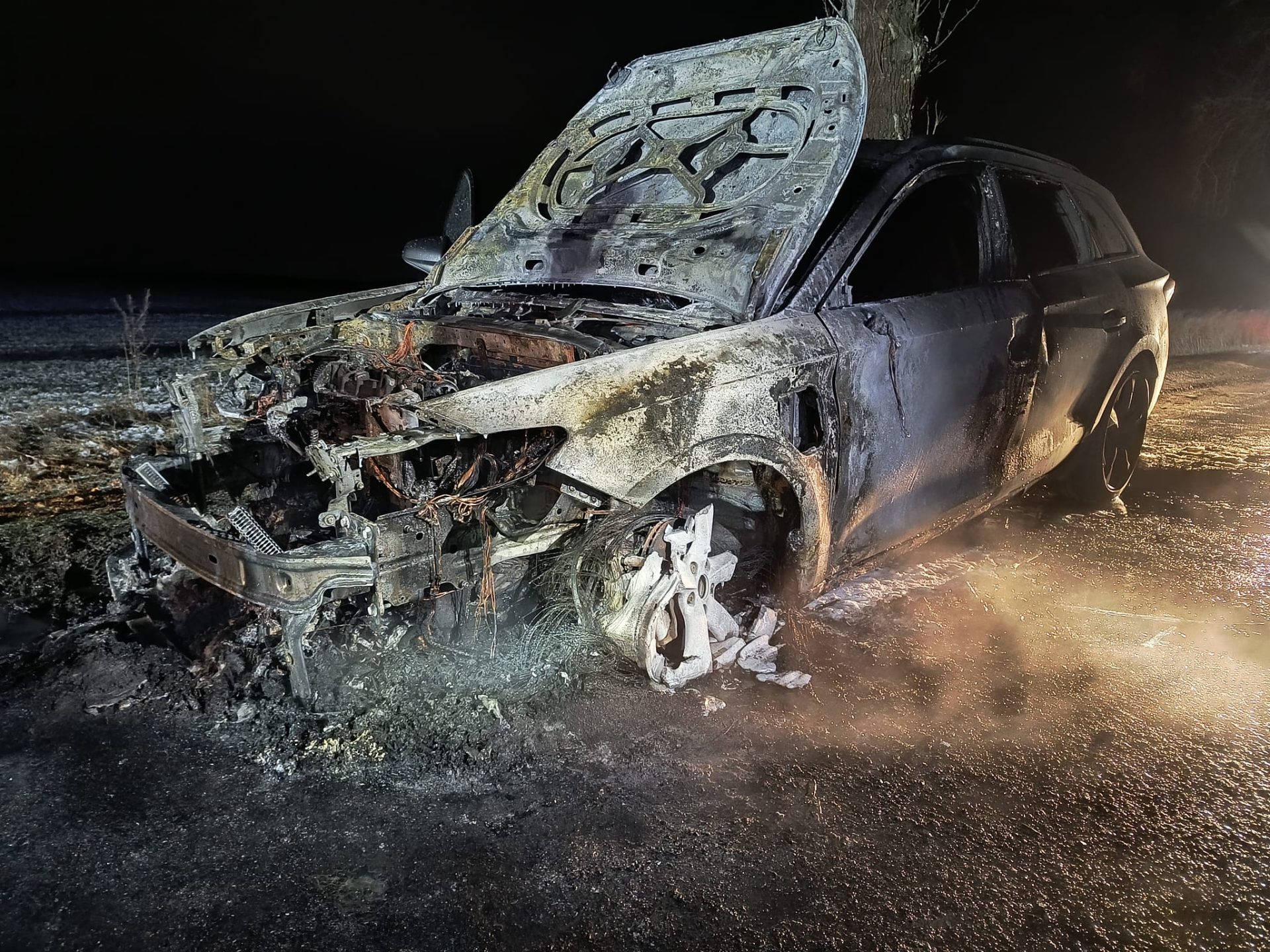 W niedzielę, 1 lutego 2026 roku, o godz. 18.21 dyżurny Stanowiska Kierowania Państwowej Straży Pożarnej w Szamotułach odebrał zgłoszenie o pożarze samochodu osobowego w miejscowości Brzoza, na terenie gminy Duszniki.