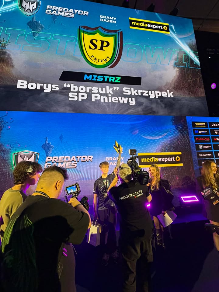 W sobotę, 21 marca 2026 roku, w Płocku odbyły się finały ogólnopolskiego turnieju Predator Games – największego międzyszkolnego wydarzenia esportowego w Europie. Wśród zwycięzców znalazł się Borys Skrzypek, uczeń Szkoły Podstawowej im. Powstańców Wielkopolskich w Pniewach, który po raz drugi z rzędu zdobył pierwsze miejsce w Polsce w grze Fortnite w kategorii szkół podstawowych.