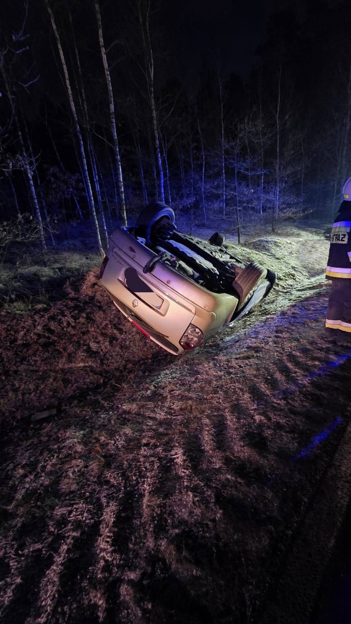 Po dojeździe służb zastano samochód osobowy, który zjechał z drogi i dachował. Służby stwierdziły, że nikt nie odniósł obrażeń.