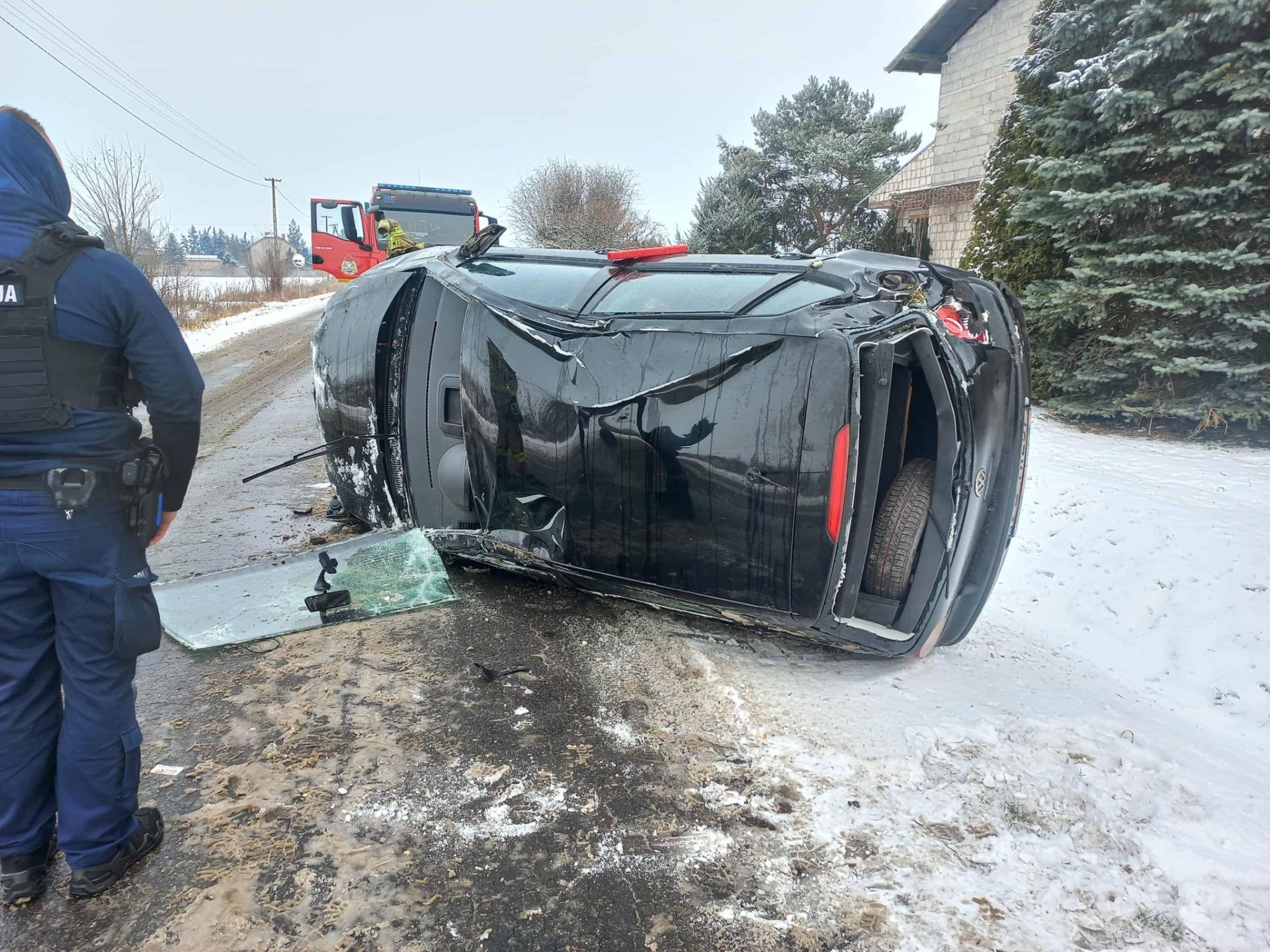 Po dojeździe na miejsce zdarzenia zastano samochód osobowy, którego kierowca zjechał z drogi i dachował. Kolizja wyglądała groźnie, jednak nie było osób poważnie poszkodowanych.