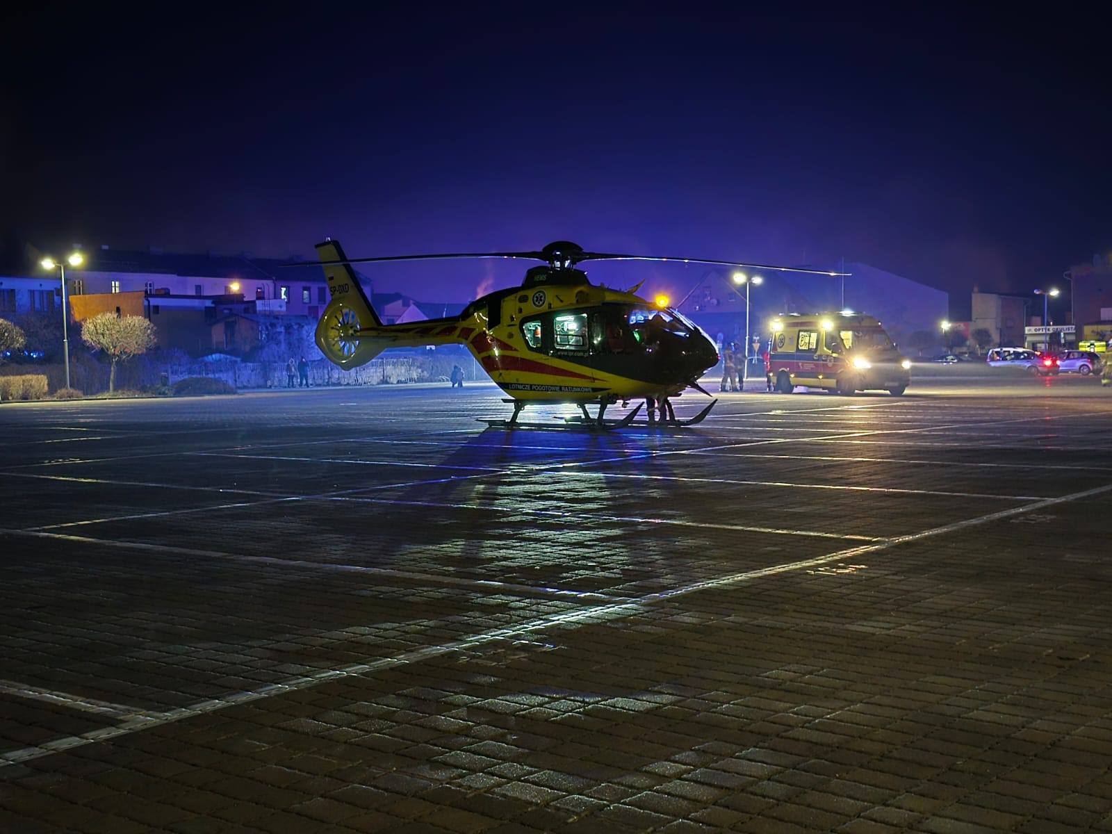 Mężczyzna doznał poważnych obrażeń – został przetransportowany do szpitala śmigłowcem LPR. Szczegółowe okoliczności zdarzenia ustala policja pod nadzorem prokuratora.