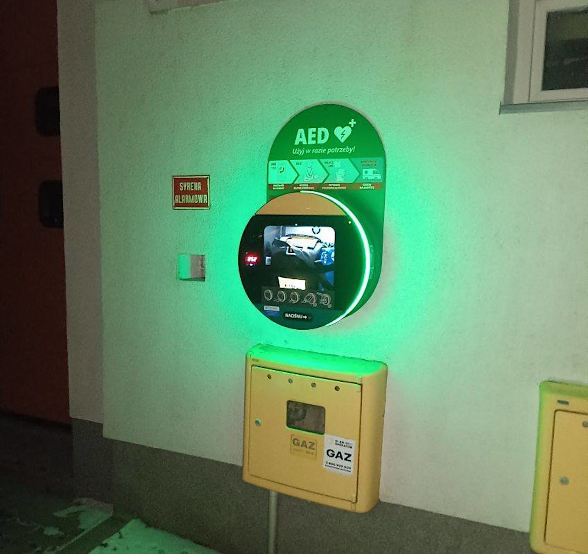 Defibrylator został zintegrowany z systemem alarmowym. W momencie otwarcia kapsuły i wyjęcia urządzenia strażacy z OSP Kaźmierz są automatycznie powiadamiani. Oznacza to, że profesjonalna pomoc wyrusza na miejsce zdarzenia natychmiast, a osoba udzielająca pierwszej pomocy może skupić się na ratowaniu życia zgodnie z komunikatami AED.