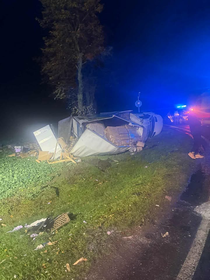 Ze wstępnych informacji wynika, że na skrzyżowaniu dróg wojewódzkich doszło do wypadku z udziałem samochodu ciężarowego oraz auta dostawczego. Jedna osoba została poszkodowana.