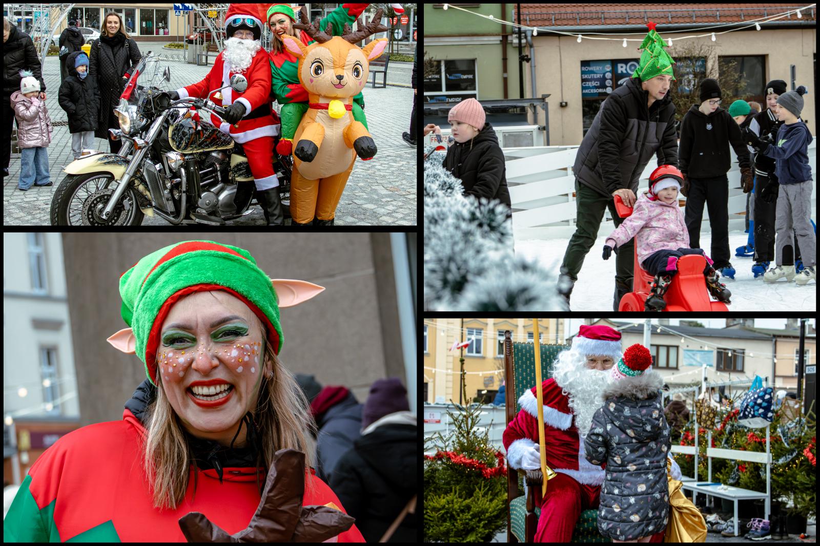 Tuż po otwarciu rozpoczęło się spotkanie z Mikołajem i jego skrzatem. Goście chętnie robili zdjęcia, a dzieci odbierały drobne upominki. Sporo radości sprawiło przybycie na Rynek drugiego Mikołaja, który zamiast sań miał motocykl.