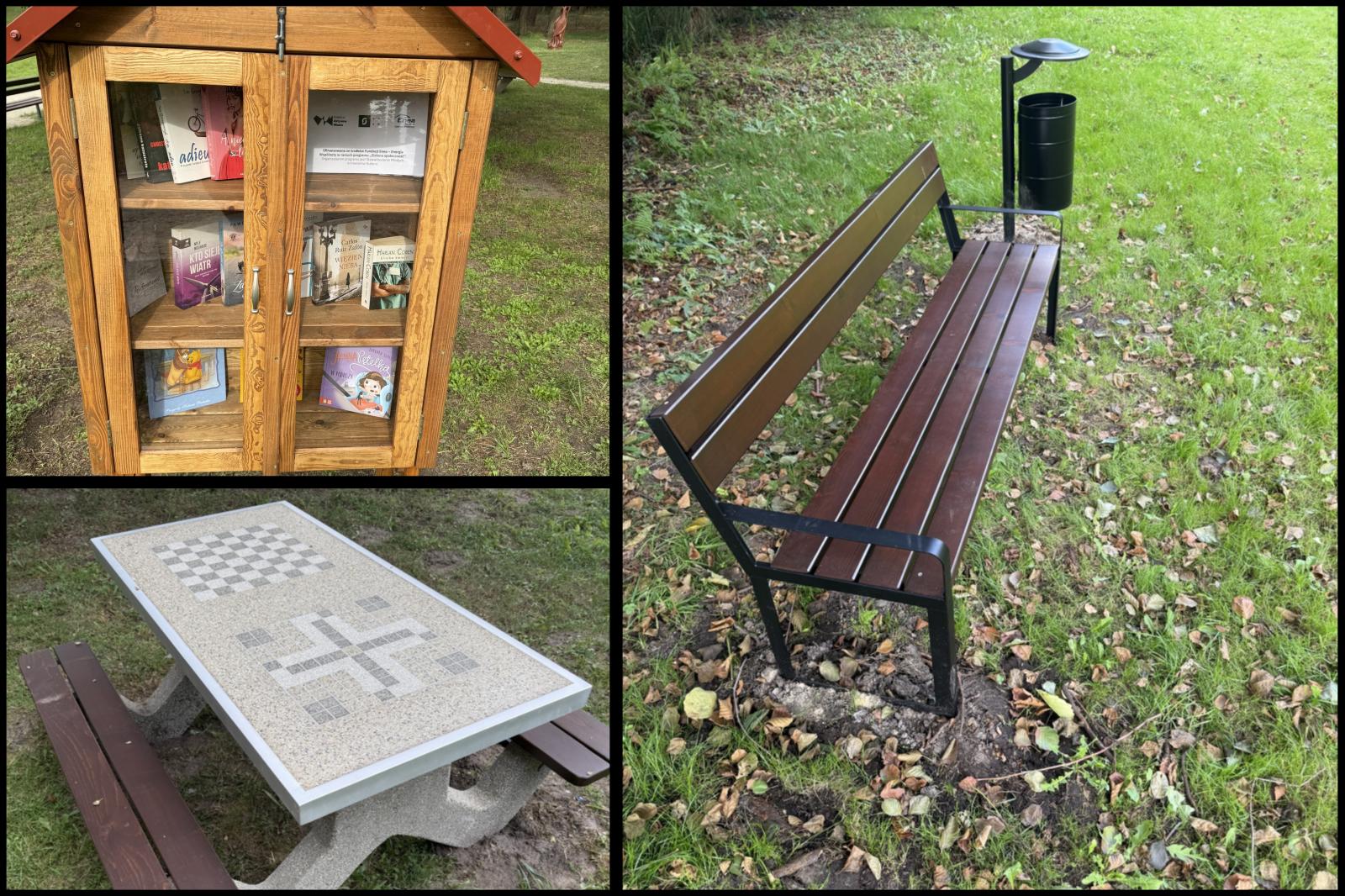 Teren wzbogacono o elementy małej architektury: trzy ławki parkowe, ławostół do gry w szachy, dwa kosze na śmieci oraz plenerową biblioteczkę, z której mogą korzystać wszyscy mieszkańcy. Nowa infrastruktura zachęca do spędzania czasu na świeżym powietrzu i rozwijania sąsiedzkiej integracji.
