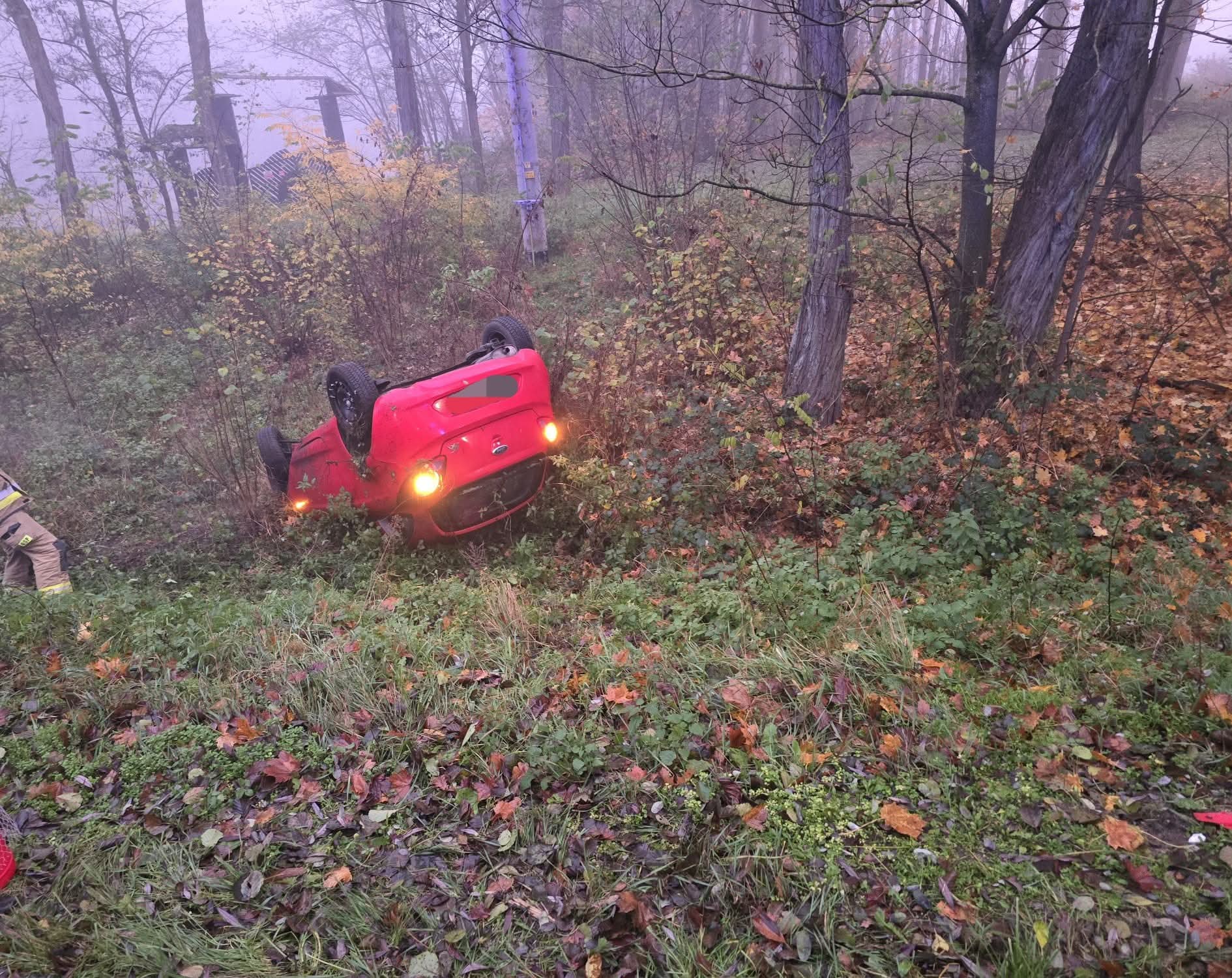 Po przybyciu służb stwierdzono, że doszło do kolizji samochodu osobowego, który zjechał z drogi i dachowal. Na szczęście nikt nie odniósł obrażeń. Strażacy zabezpieczyli miejsce zdarzenia oraz usunęli skutki kolizji z jezdni.