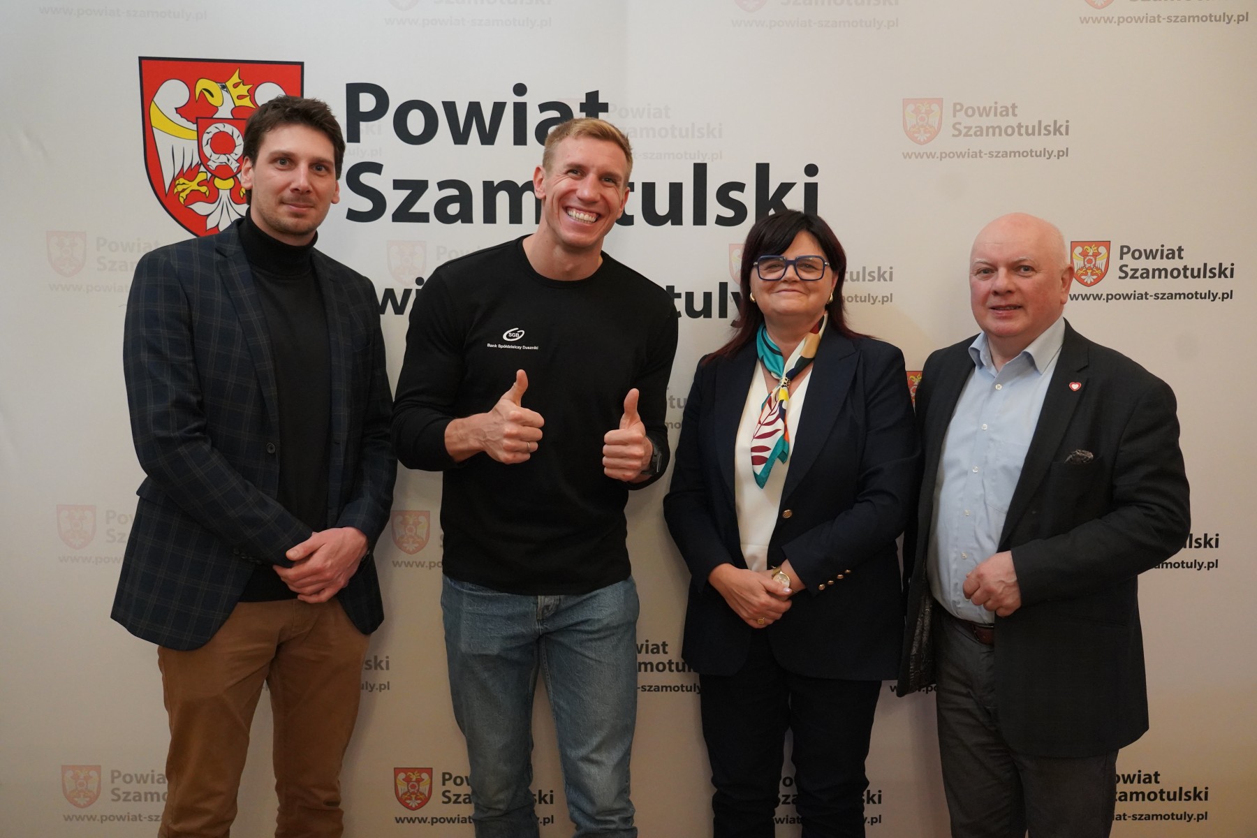 W środę w Starostwie Powiatowym w Szamotułach odbyło się spotkanie starosty Beaty Hanyżak oraz wicestarosty Przemysława Nowaka z Piotrem Liskiem. Utytułowany tyczkarz z Dusznik od lat wspiera promocję sportu w regionie i angażuje się w inicjatywy o charakterze lokalnym. Rozmowa dotyczyła przyszłorocznych wydarzeń sportowych, które Powiat planuje zrealizować w 2026 roku.