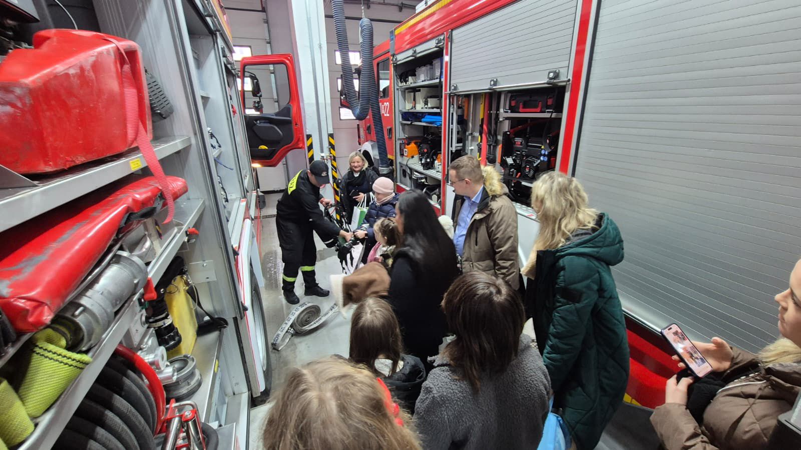 Po zakończeniu uroczystości strażacy z Komendy Powiatowej PSP w Szamotułach oprowadzili młodych artystów po terenie Jednostki Ratowniczo-Gaśniczej. Uczestnicy mieli okazję zobaczyć specjalistyczny sprzęt wykorzystywany w codziennej służbie oraz poznać specyfikę pracy strażaków.
