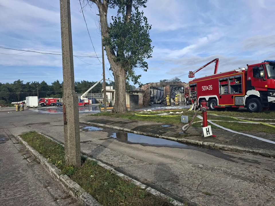 Cały budynek uległ spaleniu i zawaleniu. W środku obiektu znajdują się pojazdy oraz materiały pędne – informuje Komenda Wojewódzka PSP w Poznaniu.
