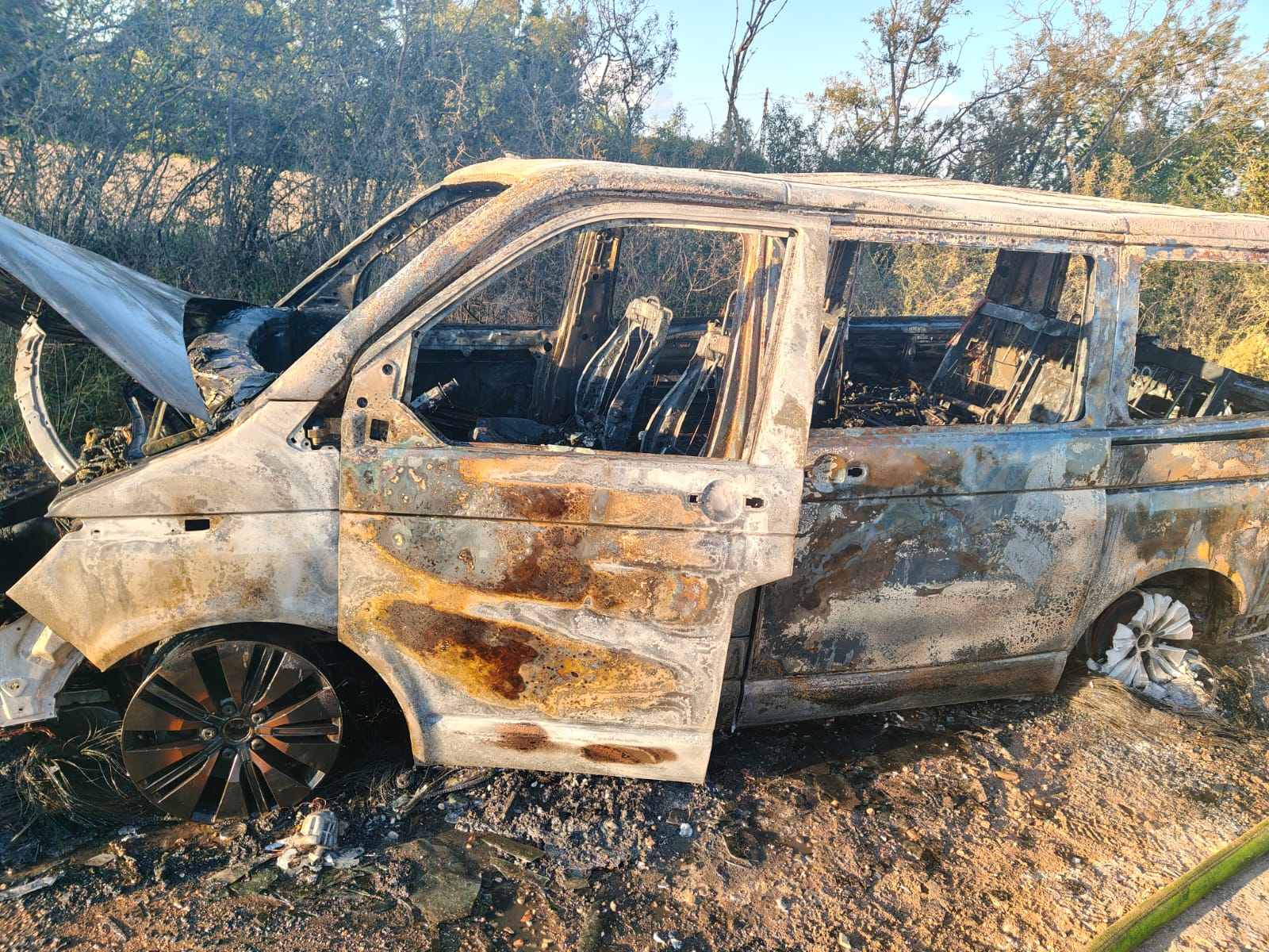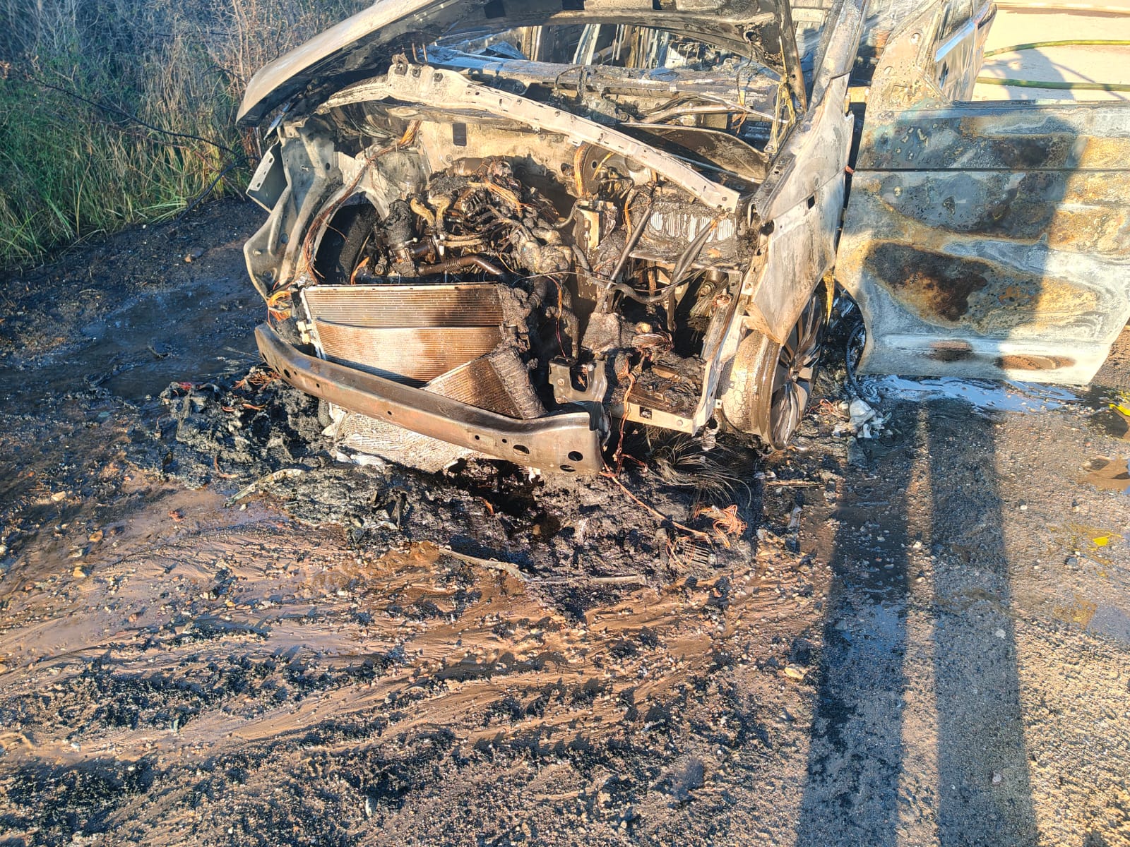 Samochód spłonął doszczętnie. Na szczęście nie było osób poszkodowanych.