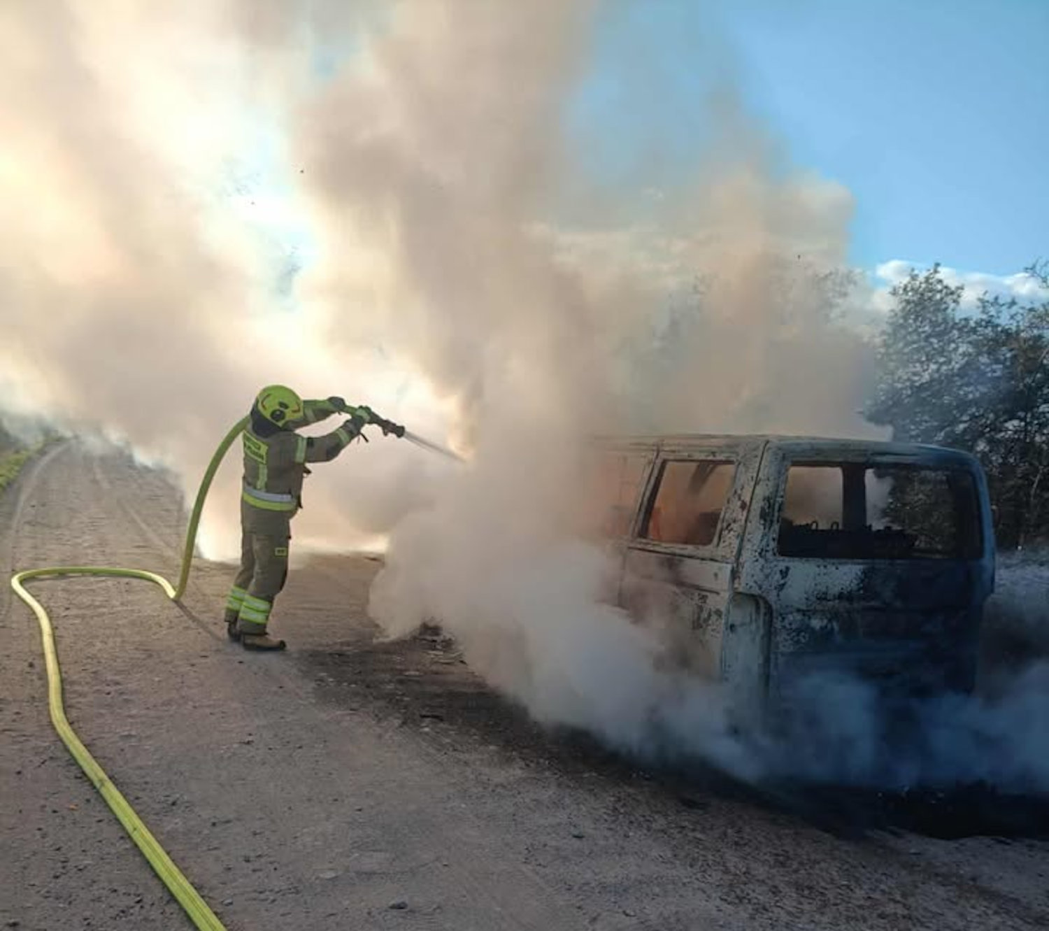 Działania Straży Pożarnej polegały na zabezpieczeniu miejsca zdarzenia, podaniu jednego prądu gaśniczego w natarciu na palący się pojazd, schłodzeniu karoserii oraz sprawdzeniu kamerą termowizyjną w celu wykluczenia innych zarzewi ognia – inofrmuje st. ogn. Łukasz Kawka z KP PSP Szamotuły.
