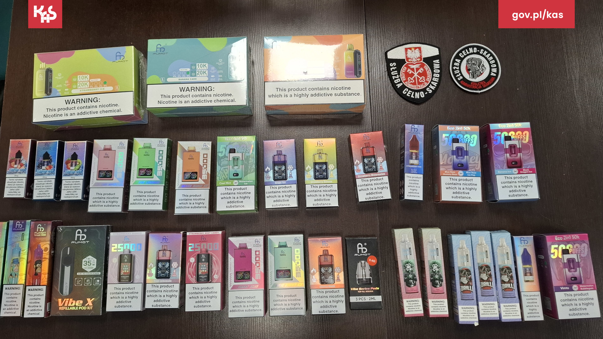 3 lutego 2026 roku funkcjonariusze Wielkopolskiego Urzędu Celno-Skarbowego w Poznaniu przeprowadzili kontrolę w jednej z firm kurierskich. Działania dotyczyły nielegalnych wyrobów akcyzowych. W efekcie przejęto ponad 2,5 tysiąca sztuk towaru, w tym ponad 50 litrów płynów do e-papierosów.