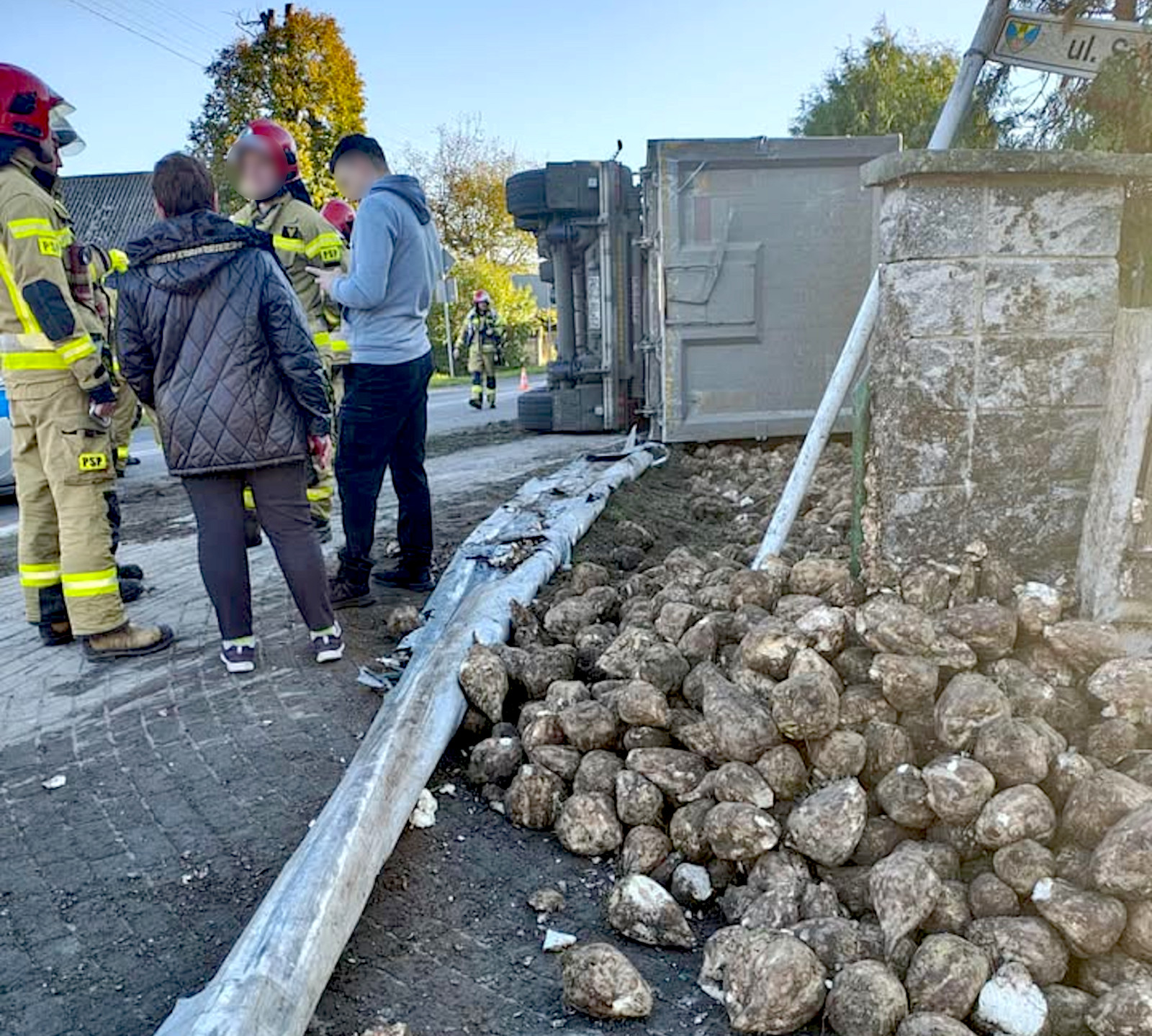 Ze wstępnych informacji wynika, że na skrzyżowaniu ulicy Szkolnej z ulicą Lipową przewróciła się ciężarówka przewożąca buraki cukrowe. Na szczęście kierowcy i osobom postronnym nic się nie stało.